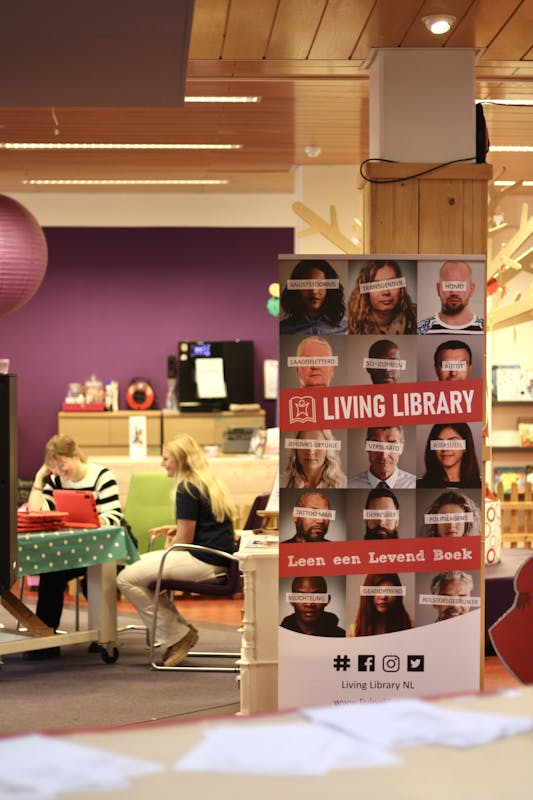 - Meld je aan bij de Living Library-balie