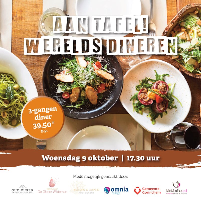 Het 3-gangen diner kost € 39,50 p.p. Een deel van de opbrengst gaat naar een goed doel. Het aantal plaatsen is beperkt, dus reserveer snel.