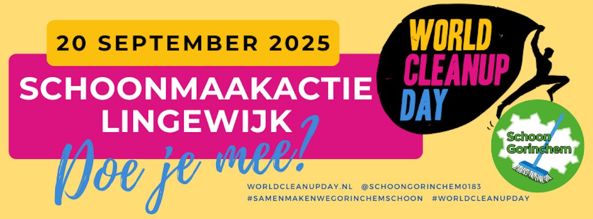 Aanstaande zaterdag, 20 september, is het zo ver: Burgerinitiatief Schoon Gorinchem gaat met enthousiaste buurtbewoners en andere stadsgenoten zwerfvuil verwijderen in de Lingewijk. Het is dan World Cleanup Day, de jaarlijkse wereldwijde schoonmaakactie. Kom je ons helpen? Aan de slag in je eigen straat of buurt kan natuurlijk ook. Samen maken we Gorinchem schoon!