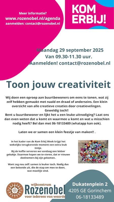 Wijkcentrum Rozenobel - Dukatenplein 2 - 4205 GE Gorinchem