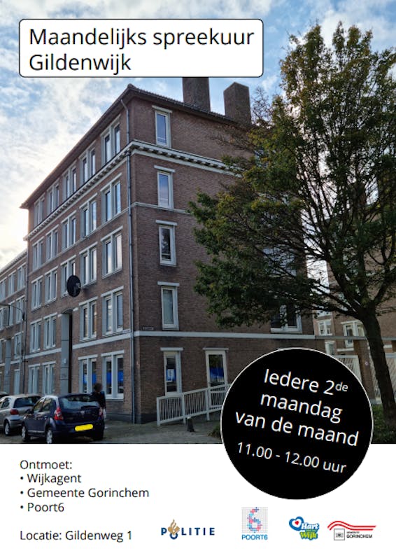 Woont u in de Gildenwijk in Kremlin 2 en heeft u een vraag aan de Gemeente uw Wijkagent of Poort6? Kom dan op de tweede maandag van de maand naar een open inloop. Het maandelijkse spreekuur is van 11:00-12:00 uur in het wijkkantoortje van Poort6. Deze is te vinden op Gildenweg 1 (Kruising met de Snijderstraat/ Tegenover Vakcollege 't Gilde).