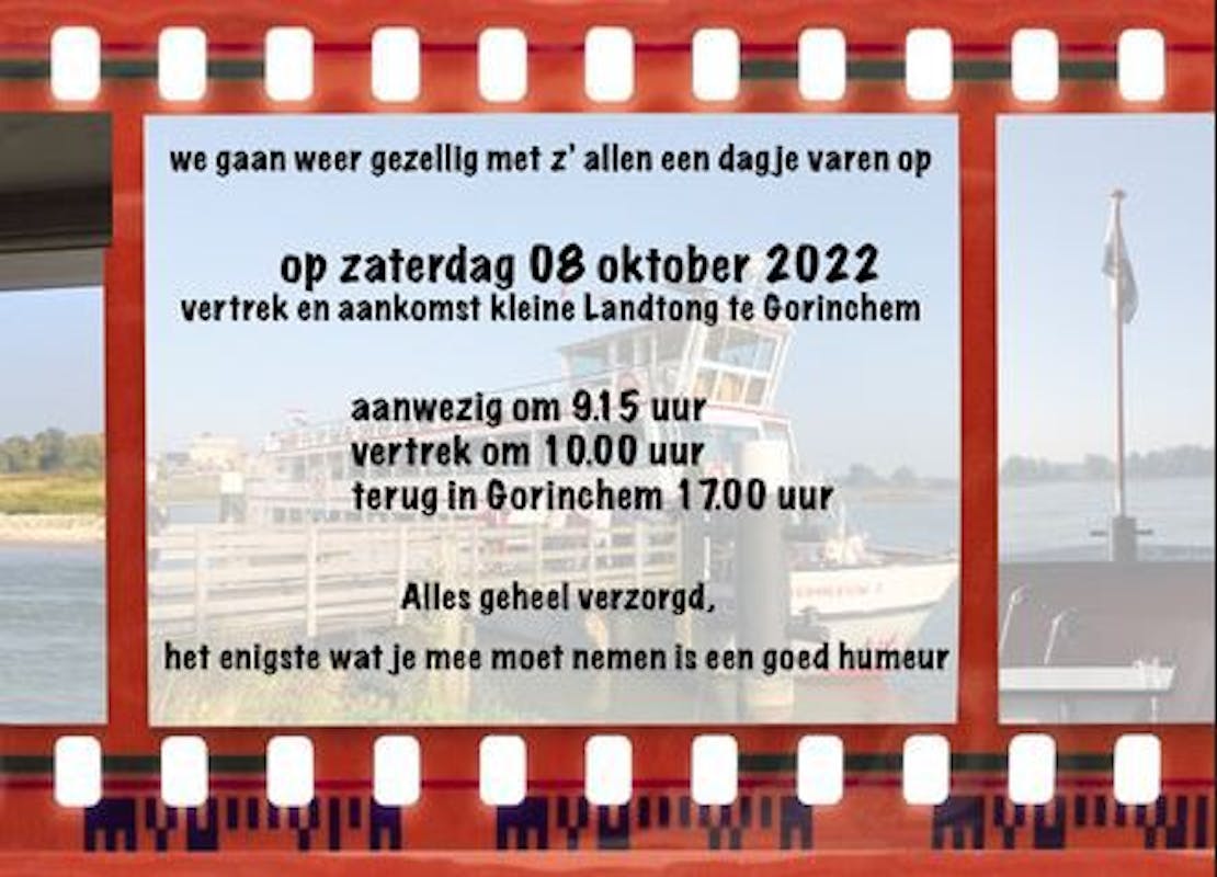 Afdeling Gorinchem organiseert dit jaar wederom een dagboottocht. Een unieke belevenis op het water!