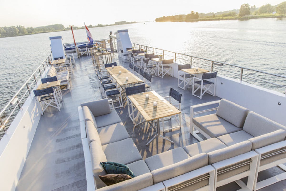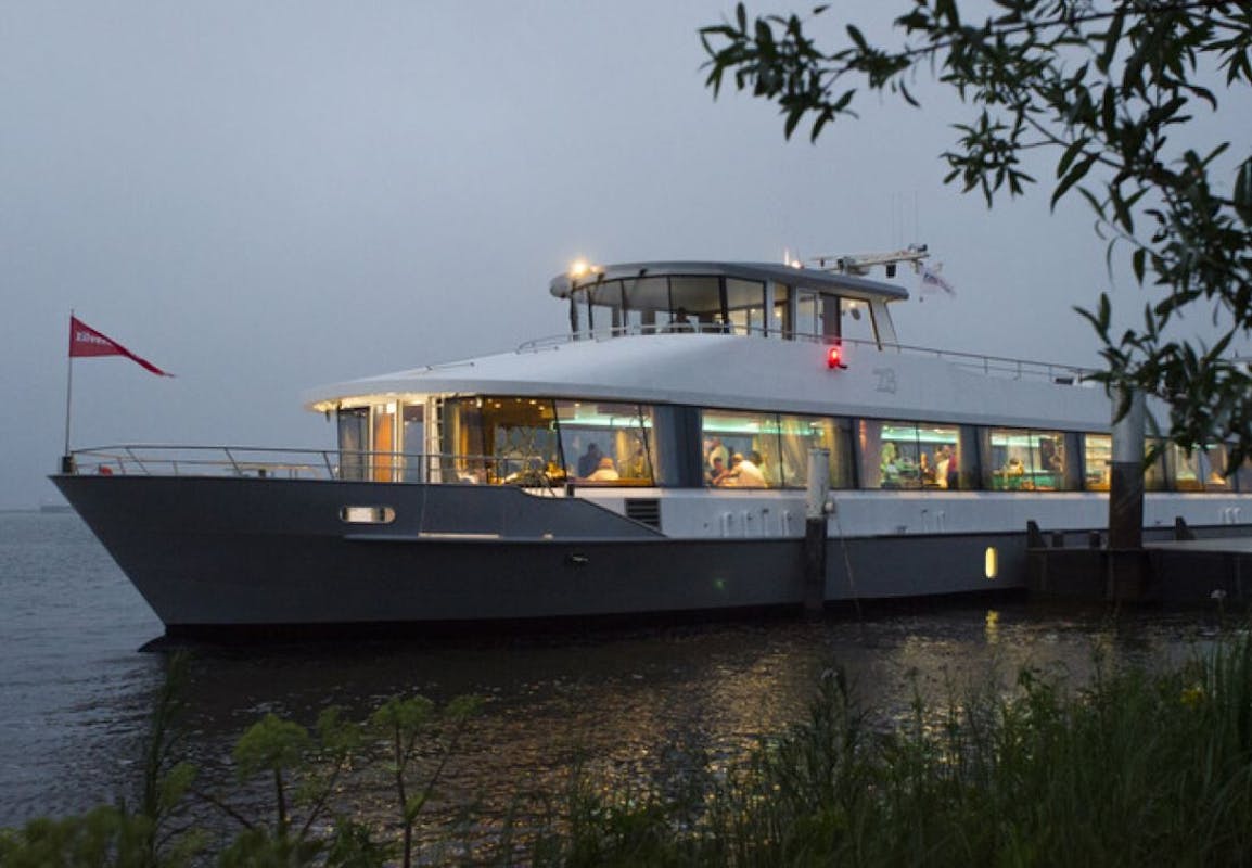 Dit jaar varen we met de Z8 van de Zilvermeeuw. Deze elektrische boot is voorzien van drie buitenterrassen, een panaromadek en een stijlvol binnendek. Als de skyline van de Merwede begint te vervelen – al betwijfelen we dat ten zeerste – kunt u ook ontspannen genieten van uw drankje en hapje in de stijlvol ingerichte binnenruimte.