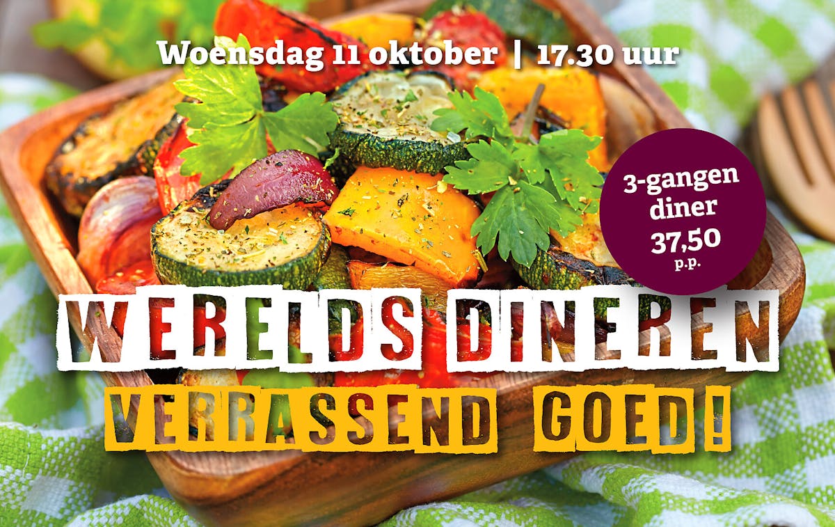 Wereldsdineren, schuif gezellig aan woensdagavond 11 oktober om 17.30 uur.
