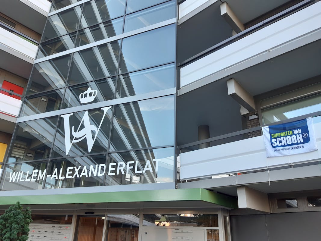 De vrijwilligers van Schoon Gorinchem kozen de Willem-Alexanderflat als plek voor hun schoonmaakactie omdat de bewoners lange tijd te maken hadden met de ongemakken van de renovatie van hun woningen. Schoon Gorinchem bindt de strijd aan met zwerfvuil, maar wilde hier meer: nieuwe planten in de bloembakken; beplanting rond de lantaarnpalen; verwijdering van onkruid tussen de bestrating; betrokkenheid van bewoners. Hiervoor zocht en kreeg Schoon Gorinchem medewerking van woningcoöperatie Poort 6, de gemeente, reinigingsdienst Waardlanden, Avres groenvoorziening, en woonvoorziening ASVZ locatie Wijnkoperstraat.