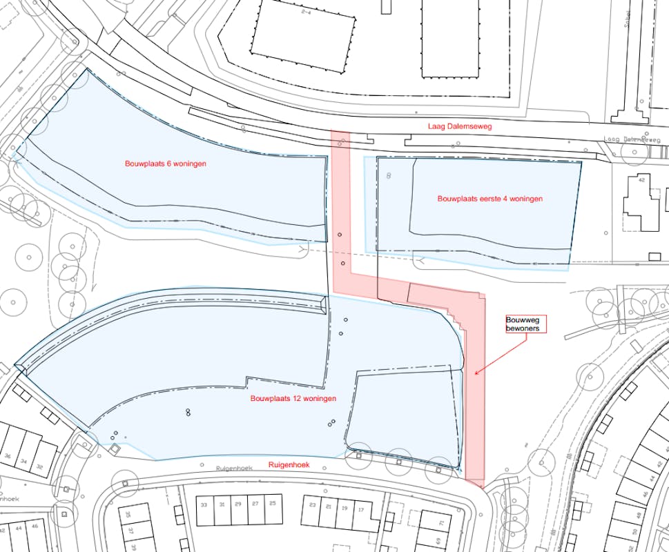 Zolang er gebouw wordt kunnen de bewoners van Ruigenhoek gebruik maken van de bouwweg die om de bouwlocatie heen is gelegd. Na de bouw zal er een definitieve aansluiting vanuit de wijk op de Laag Dalemseweg worden gemaakt.