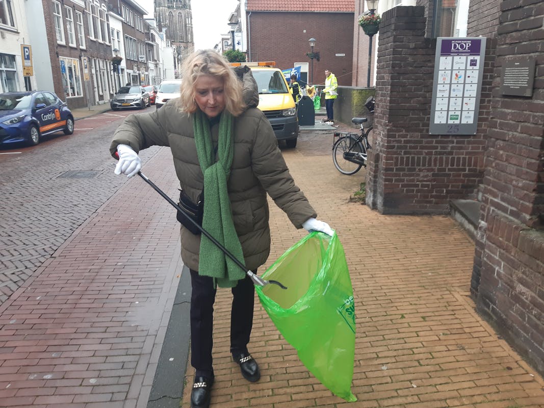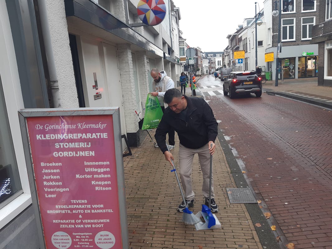 Burgemeester Melissant kwam in actie tijdens de zevende Schone-winkelstraat-estafette die deze keer in de Krijtstraat, de Kruisstraat en de Haarstraat plaatsvond. Zij prees de inzet van de vrijwilligers van burgerinitiatief Schoon Gorinchem die dit in samenwerking met Winkeliersvereniging Hartje Gorkum en Stichting Gorinchem Citymarketing organiseerden en complimenteerde de aanwezige ondernemers voor hun deelname. “Als mooiste vestingstad van Nederland, willen we niet alleen mooi maar ook schoon zijn”, aldus de burgemeester. Nadat zij de sirene liet loeien als startsein veegden de mooimakers, zoals een voorbijganger de actievelingen noemde, de vele peuken en andere rondslingerende troep op. Reinigingsdienst Waardlanden was weer aanwezig om het verzamelde vuil mee te nemen. Bij Leuk! makelaars in de V&D-passage stond na afloop de koffie klaar en was er tijd voor praatje. Schoon Gorinchem is genomineerd voor een Award voor Duurzaamheid. Stemmen kan nog om ons te helpen aan de eerste plaats via dode volgende link: Award voor Duurzaamheid .