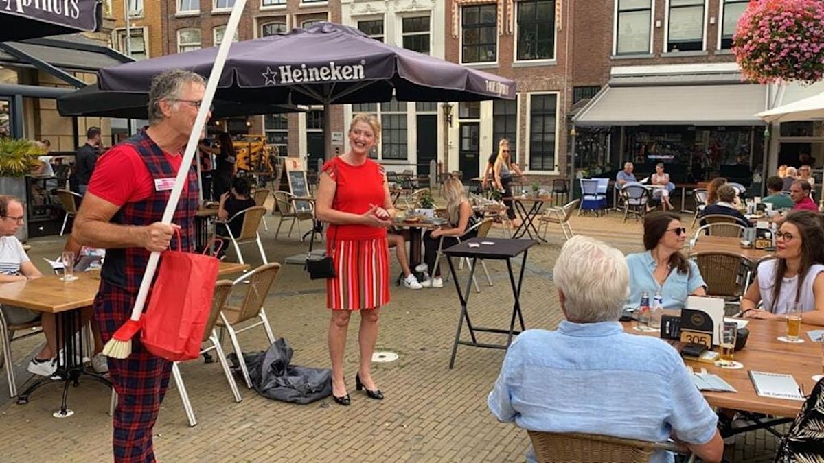 Lokale artiesten maakten bezoekers van het terras op ludieke wijze bewust van de basisregels.