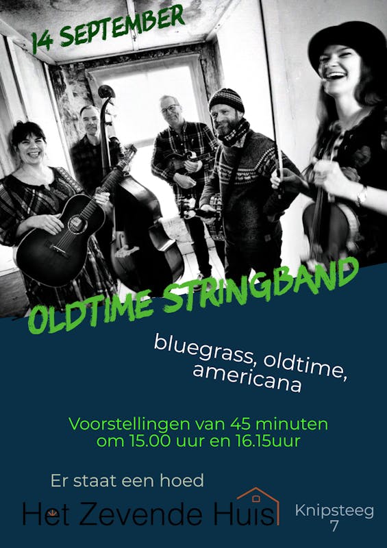 Het nieuwe seizoen in Het Zevende Huis start groots en meeslepend met The Oldtime Stringband. Tijdens de Culturele Zondag op 14 september staat deze vijfkoppige band uit Hoorn/ Amsterdam op het kleinste podium van Gorinchem. Ze spelen een mix van bluegrass, oldtime en americana. Ze zijn ooit opgericht om een documentairepresentatie over koeienschilder Ruud Spil te begeleiden. Inmiddels zijn ze vier albums, drie Engelse tours, een Californië tour een vele binnenlandse, Duitse en Belgische optredens verder.