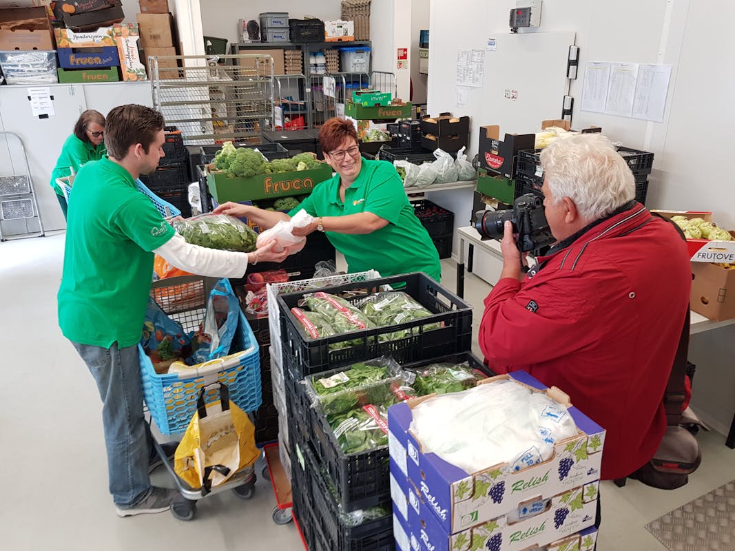 Onze vrijwilligerster Erika werd vandaag bij het uitdeelpunt van de Voedselbank Gorinchem gefotografeerd door het AD. Daar zal ze binnenkort in verschijnen in een artikel over bijzondere inzet en beroepswisselingen in Coronatijd. Samen met vrijwilliger Robin laten ze zien hoe het winkelsysteem nu werkt: een vrijwilliger loopt als koerier door de Voedselbank-supermarkt en pakt artikelen voor een gezin in. Erika is altijd verantwoordelijk voor het verdelen van de groenten en het fruit.