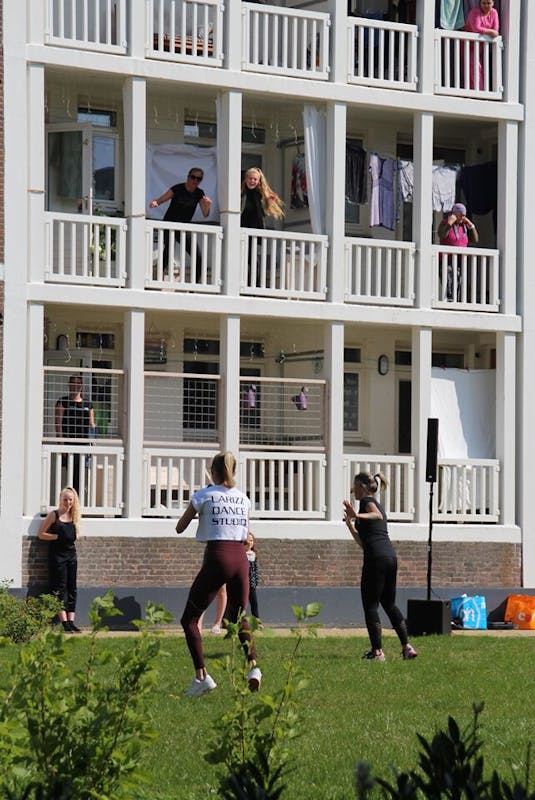 Vrijdagmiddag verrasten we de bewoners van Kremlin I. Nu iedereen zoveel mogelijk thuis zit, wilden we hen graag samen met Gorinchem Beweegt en Poort6 een hart onder de riem steken. Daarom konden ze vanmiddag vanaf hun balkon bewegen en dansen met LaRizz Dance Studio op muziek van Pro-tunes entertainment.