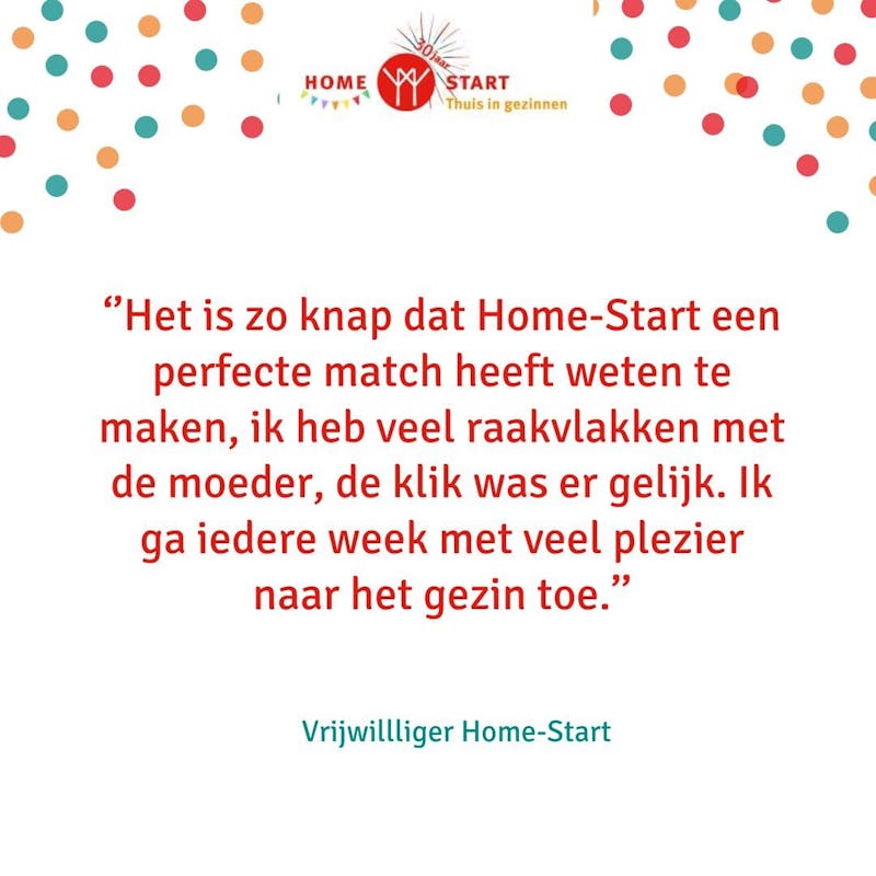 Neem ook eens een kijkje op onze social media, waar gezinnen en vrijwilligers hun ervaringen delen: En op: www.home-start.nl