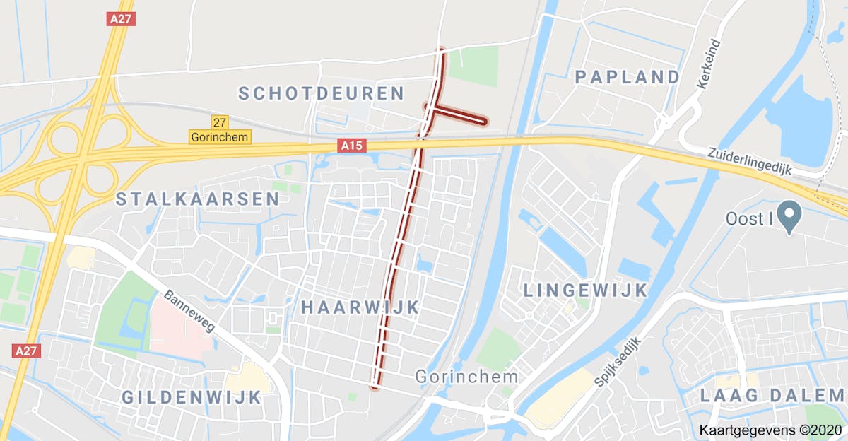 - een van ongeveer 1 kilometer tussen de Grote- en Kleine Haarsekade ter hoogte van de Koningin Julianalaan naar de A15.
