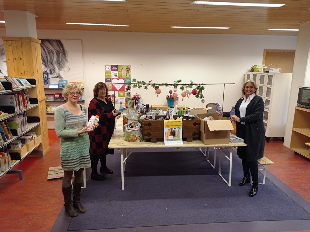 Begin november zijn de LimonadeBrigade en de Bibliotheek deze actie gestart. Er zijn in totaal 8 kratten vol met, doucheschuim, tandpasta, shampoo en andere verzorgingsproducten vorige week opgehaald, Mariëlle (uitgifte coördinator van de Voedselbank Gorinchem) nam de producten in ontvangst.