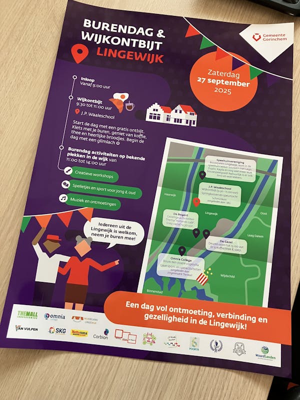In de vroege ochtend van Burendag 27 september kwamen bewoners van de Lingewijk bijeen voor een gezamenlijk ontbijt, Eten verbindt, versterkt de onderlinge banden en maakt nieuwe ontmoetingen mogelijk. De organisatie van dit evenement was in handen van de vele partners & ondernemers,, gemeente, Wijkbelang en bewoners uit de wijk,