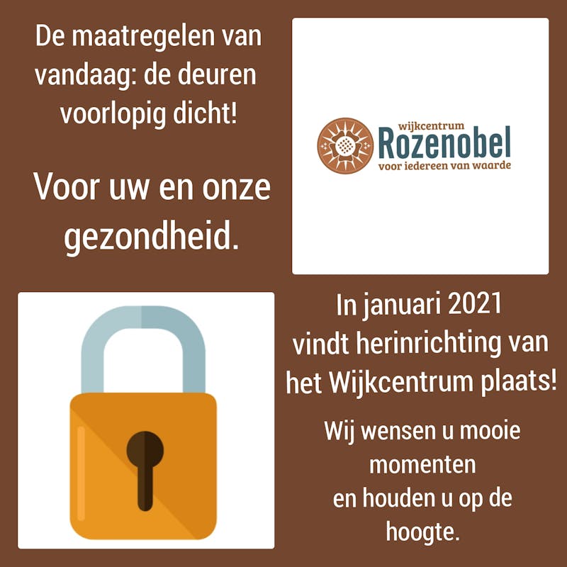 Het wijkcentrum sluit haar deuren zoals ook op veel andere plaatsen het geval is. Op slot: voor uw en onze gezondheid.