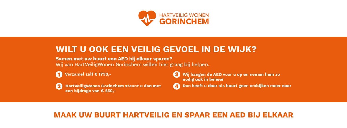 Maar we zijn er nog niet in Gorinchem. Om een écht dekkend netwerk van AED's te hebben dient er overal in Gorinchem binnen een straal van 300 meter een AED te zijn. Zo ver zijn we helaas nog niet.