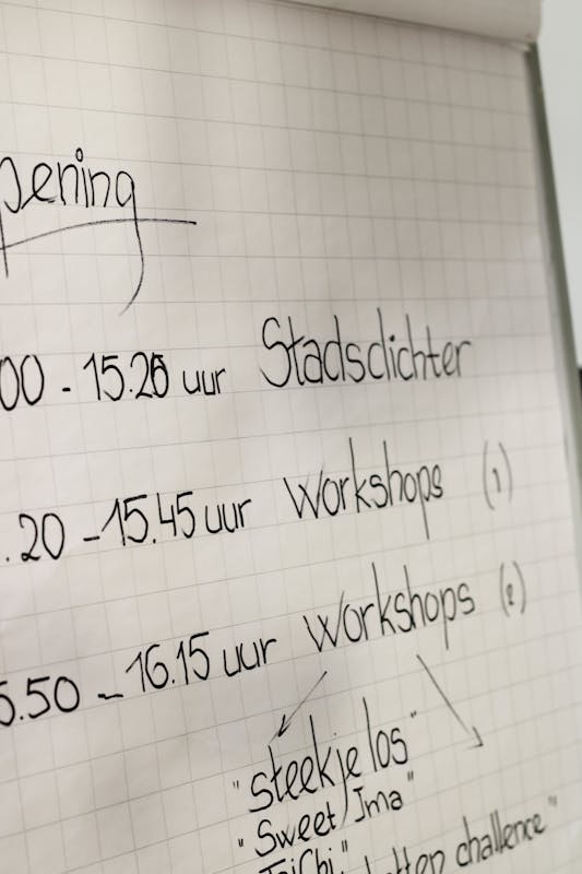 Er waren verschillende workshops te volgen. Zo gaf Vicky Bergman de workshop 'een steekje los', konden we koekjes bakken met Sweet Ima, onze krachten ontdekken bij de 'buurtschatten challenge' en aan de slag met 'tai chi'. Op het eind konden we nog netwerken en dansen op de muziek van het meezing café.