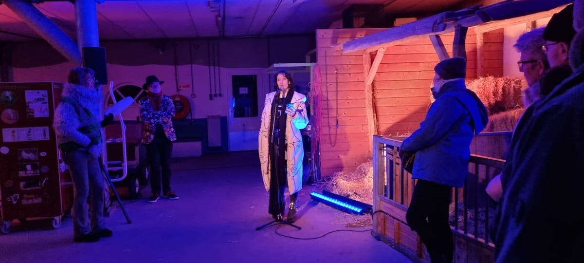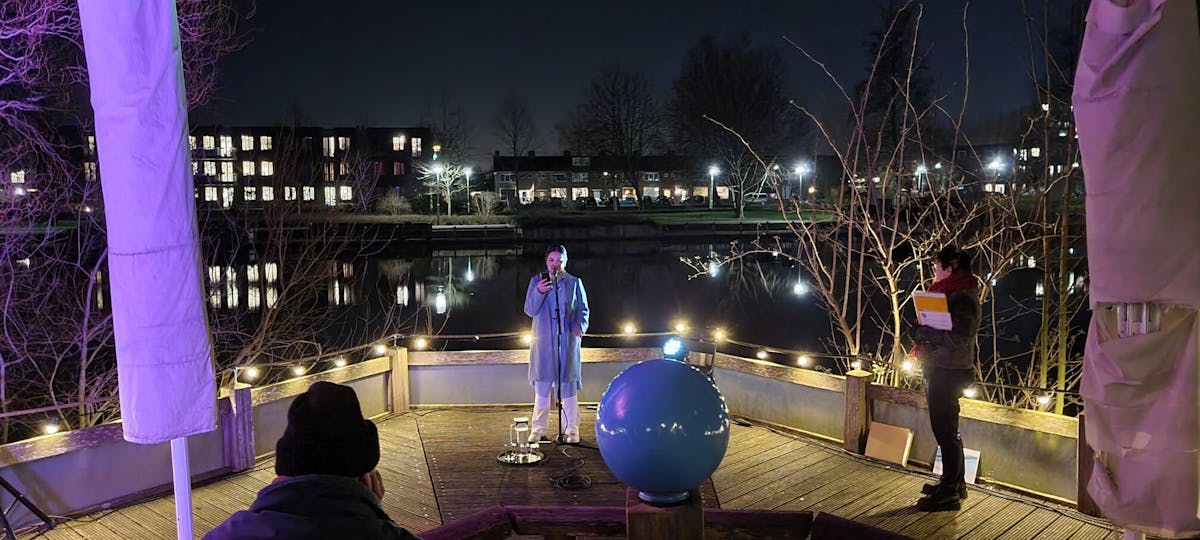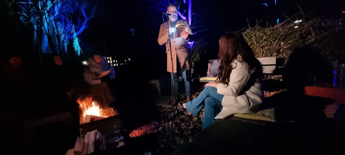 Een prachtig verlicht bos heette tientallen deelnemers welkom. Eenmaal aangekomen werd men in groepen verdeeld door middel van noten, bessen en zaden. Op vier super unieke podia droegen locale Gorinchemse poezie artiesten hun spoken word voor. Vol hartelust en soms met wat zang/rap kregen we van alles te horen. Zelfs in het Frans of Engels, met beeldspraak en vleugjes theater. Het was in één woord: GEWELDIG!