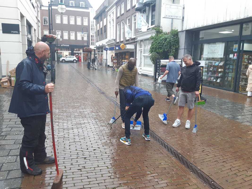 Klanten die op 2 augustus gingen winkelen in de Arkelstraat werden verwelkomd in een schoongeveegde en ook schoongespoelde straat. Het slechte weer weerhield de winkeliers er niet van om vóór de opening van hun winkels de straat onder handen te nemen. Tijdens de vierde Schone-winkelstraat-estafette, een actie van burgerinitiatief Schoon Gorinchem, winkeliersvereniging Hartje Gorcum en stichting Gorinchem Citymarketing, veegden de enthousiastelingen de stoep voor hun winkels schoon. Dieter Ouwerkerk van de Boekenkist en straatvertegenwoordiger liet als startsein een sirene loeien. Behalve papier, plastic, blikjes en flesjes werden er heel veel peuken opgeruimd (met de peukenzuiger van Schoon Gorinchem, voor iedereen te leen bij de VVV). “Eigenlijk zijn rokers heel asociaal”, constateerde Bert van Zuilen bij het zien van de vele peuken voor zijn winkel. Reinigingsdienst Waardlanden zorgde weer voor vegers en grijpers en voor het ophalen van het opgeveegde zwerfvuil. Na afloop trakteerde De Mallemolen de natgeregende schoonmakers op een warme bak koffie met wederom door bakker Van de Grijn gesponsorde koeken. De volgende Schone-winkelstraat-estafette is op 6 september.