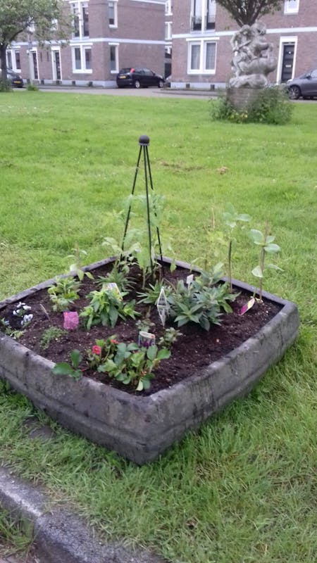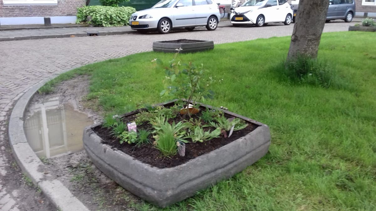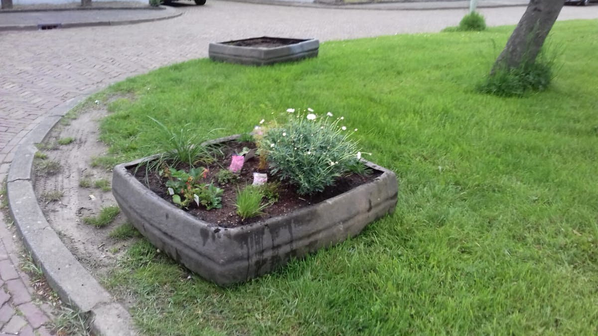 De inwoners van het Sint Jorisplein gaan de inhoud van de bakken zelf verzorgen. Vier van de zes bloembakken zijn al gevuld met bloemen en plantjes. Deze komen van inwoners zelf en een bijdrage van Mark Sterk. Hij bracht vaste en inheemste eetbare planten mee.
