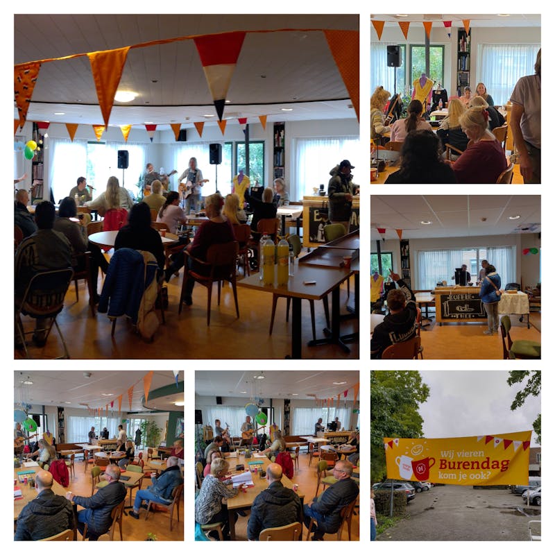 Helaas kwam de regen met bakken uit de hemel en moesten we de activiteiten binnen laten plaatsvinden. Mensen die ons al kennen vanuit de dagbesteding en de inloop trotseerden het weer om ons te bezoeken. Ook een aantal 'onbekende' buren hadden de moeite genomen om naar ons toe te komen. De reacties van de buren waren positief en ook wat nieuwsgierig van aard: ‘’Goh ik weet wel dat jullie hier zitten, maar wat doen jullie precies? Wie wonen hier nu? en Ik zie wel eens cliënten lopen en die roepen heel hard, maar dan zeg ik gewoon gedag hoor want het zijn ook gewoon mensen.’’ Het was fijn om ook juist deze buren te ontmoeten en het gesprek aan te gaan. Juist om het stigma tegen te gaan en tolerantie te creëren in onze wijk. Ik hoop dan ook van harte dat zij deze positieve ervaring zullen delen met de mensen om hen heen en dat volgend jaar meer buren de stap durven nemen om ons te ontmoeten.