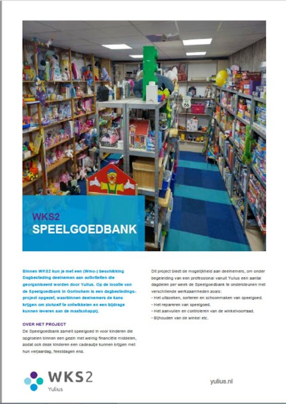 De deelnemers helpen o.a. bij het op orde houden van de winkel en het uitzoeken van speelgoed. Dit onder begeleiding van een professional. Deelnemers ervaren zingeving, het vergoot hun leefwereld, geeft zelfvertrouwen en voldoening.