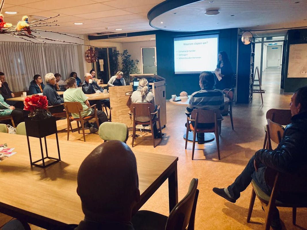 We kregen een lezing over hoe jezelf je hersenen gezond kan houden. Het ging over verschillende onderwerpen zoals slaap, beweging en voeding. Deze onderwerpen riepen vragen op en die konden dan ook uitgebreid gesteld worden. We hadden een goede opkomst van zowel cliënten als buurtbewoners. Uiteraard werd iedereen verblijd met een gezond hapje en een gezonde smoothie.