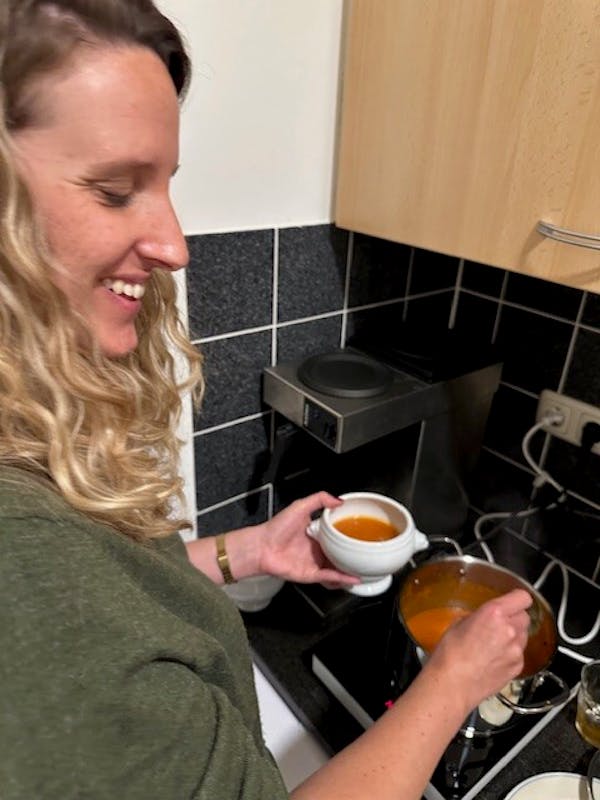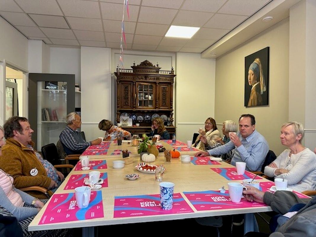 En alsof dat nog niet genoeg was, de dag was al goed begonnen bij ons want onze vrijwilligster Karin was jarig. Haar verjaardag was voor onze bezoekers letterlijk de kers op de (appeltaart). Het was in de morgen ook al een gezellige inloop. Waar we ook wat nieuwe gezichten mochten verwelkomen. Karin had ook nog een lekker tomatensoepje gemaakt van tomaten uit haar eigen moestuin. Ook die werd smakelijk gegeten tijdens de lunch.