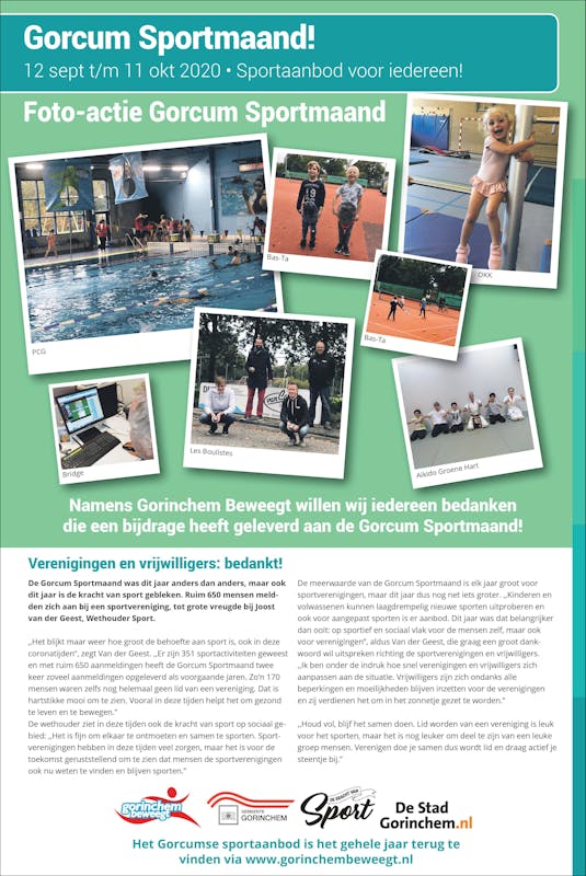 Samen staan we voor sport in Gorinchem! Heb jij een goed sportinitiatief waarmee je hieraan bij kunt dragen? Klik dan hier Gorcums sportinitiatief . Voor meer informatie, ...