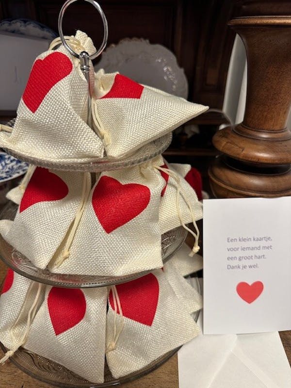 De mantelzorgers die op bezoek kwamen kregen direct een cadeautje: een zakje lekkers en een kaart om de waardering uit te spreken– een klein gebaar voor een persoon met een groot hart. Voor degenen die er niet waren, zorgen we ervoor dat kaart en de lekkernij alsnog via hun dierbaren worden bezorgd.