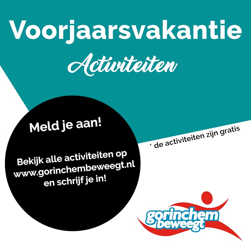 Let op: je moet je nog wel even aanmelden voor de vakantieactiviteiten, doe dit snel want vol=vol! Via de button op de homepage van www.gorinchembeweegt.nl kom je op het sportplatform waar al het aanbod te vinden is en waar je jezelf kunt aanmelden.