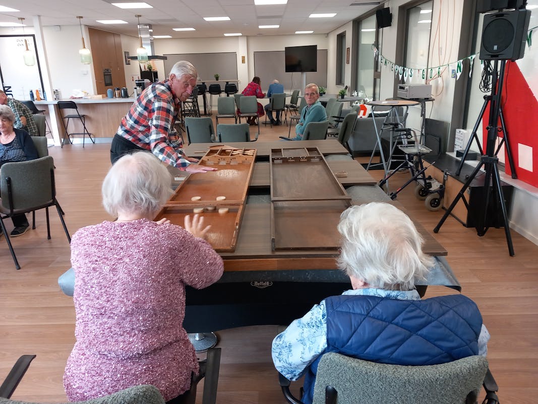 Daarna zijn we toch nog gaan gymmen in de kring, geen overbodige luxe na al die calorieën😊 Daarna ging een ieder doen waar hij/zij zin in had. Twee van onze nieuwe dames blijken veel talent te hebben voor sjoelen, het was een spannende competitie.