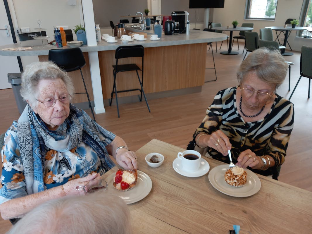 Vandaag was het feest! Onze lieve gaste Wil werd 94 jaar en de bakker kwam al vroeg langs met de lekkerste gebakjes. We hebben gezongen en genoten van het lekkers. Lang aan tafel gezeten aan de koffie.