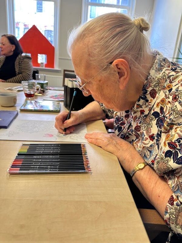 Vandaag was Paula Vink - Bonk degene die het Geheugensteunpunt bemande. Leuk om te zien dat de kruisbestuiving van bezoekers aan het steunpunt en die aan het Odensehuis merkbaar is. Het is makkelijk om wanneer je de ene plek bezoekt gelijk ook even de andere te bezoeken. Ook welzijnscoach Jopie Venderbos liep even binnen.