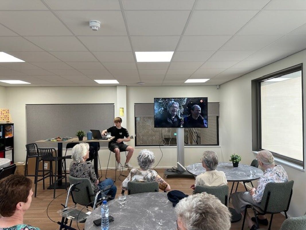 De temperatuur was een stuk lager dus na de koffie zijn we begonnen met een gym activiteit in de kring. Een goed begin om goed wakker te worden, we vinden het allemaal leuk om te doen, gasten en medewerkers. Daarna is iedereen zijn/haar gang gegaan. Schilderen, lezen, de geschiedenis van Haarlem bekeken en oude beelden van Gorinchem op de tv.