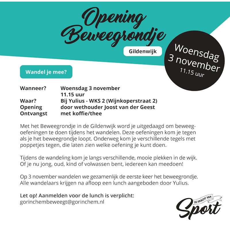 Samen staan we voor sport in Gorinchem! Heb jij een goed sportinitiatief waarmee je hieraan bij kunt dragen? Klik dan hier Gorcums sportinitiatief . Voor meer informatie, ...