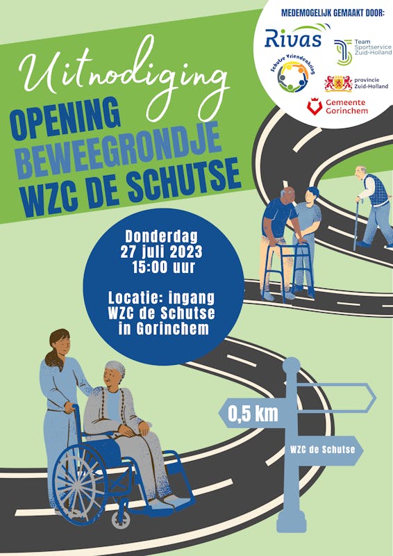 Uitnodiging voor de opening van het beweegrondje WZC De Schutse op donderdag 27 juli. Lees op de uitnodiging meer informatie!