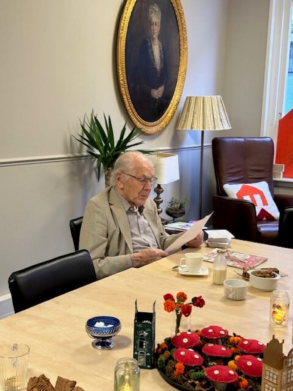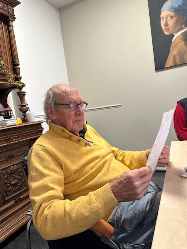 Na de lunch mochten we twee leerlingen van de zorghavo Oudehoven verwelkomen. Zij kwamen een meeloopmiddag ervaren in het kader van hun opleiding. Ze werden warm ontvangen, overspoeld met vragen, en sloten gezellig aan bij een creatieve activiteit. Onder begeleiding van één van onze getalenteerde bezoekers maakten de meiden een tekening – een mooie herinnering én een bedankje.