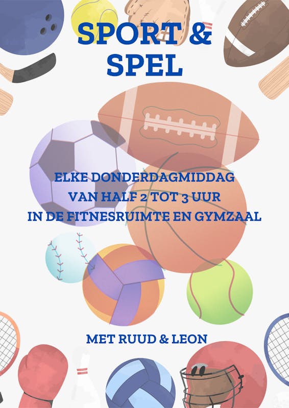 Op donderdagmiddag om 13:30 komt Sport & Spel op het programma. Dit onderleiding van Leon en vrijwilliger Ruud. Dit zal een combinatie zijn van sporten in de fitnessruimte en beweging en spel in onze gymzaal.