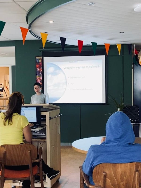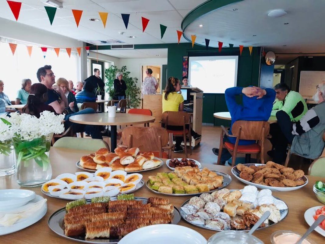We kregen een presentatie over de ramadan door één van de zoons van onze collega. Hij leerden ons wat de ramadan betekent en wat daar allemaal bij hoort. Na de leerzame presentatie mochten we proeven van echte Turkse en Marokkaanse hapjes die verschillende mensen hadden gemaakt. En dat was smullen!