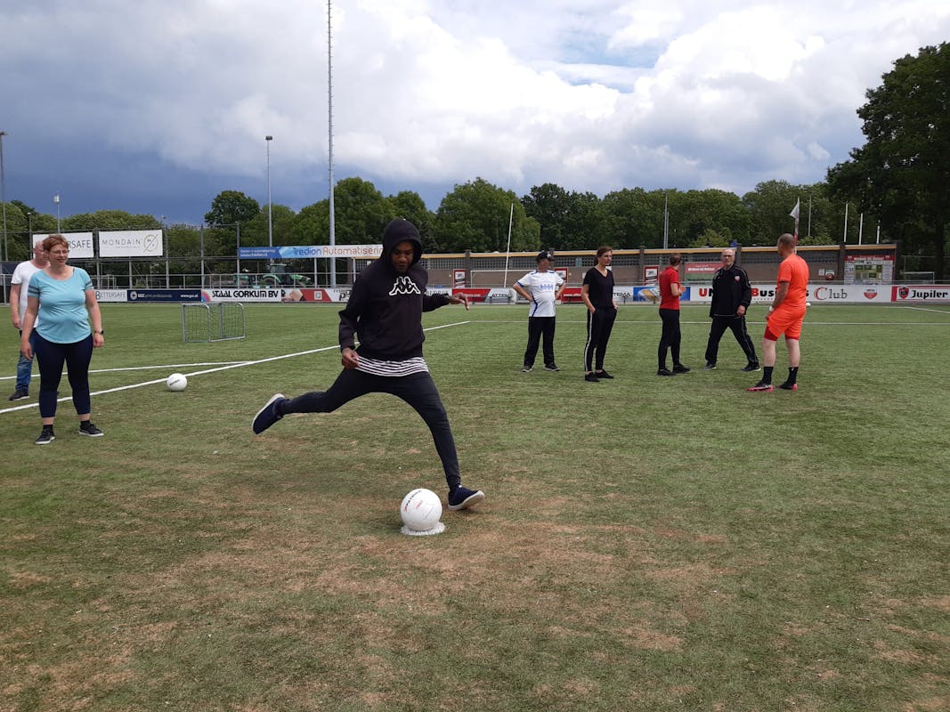 Mensen vanuit verschillende zorginstellingen konden zich aanmelden en zo hadden we een gemixte en leuke groep bij elkaar. We kreeg een clinic van Klaas die trainer is van het G-team van voetbalvereniging Unitas. Daarna was het tijd voor een echt partijtje.